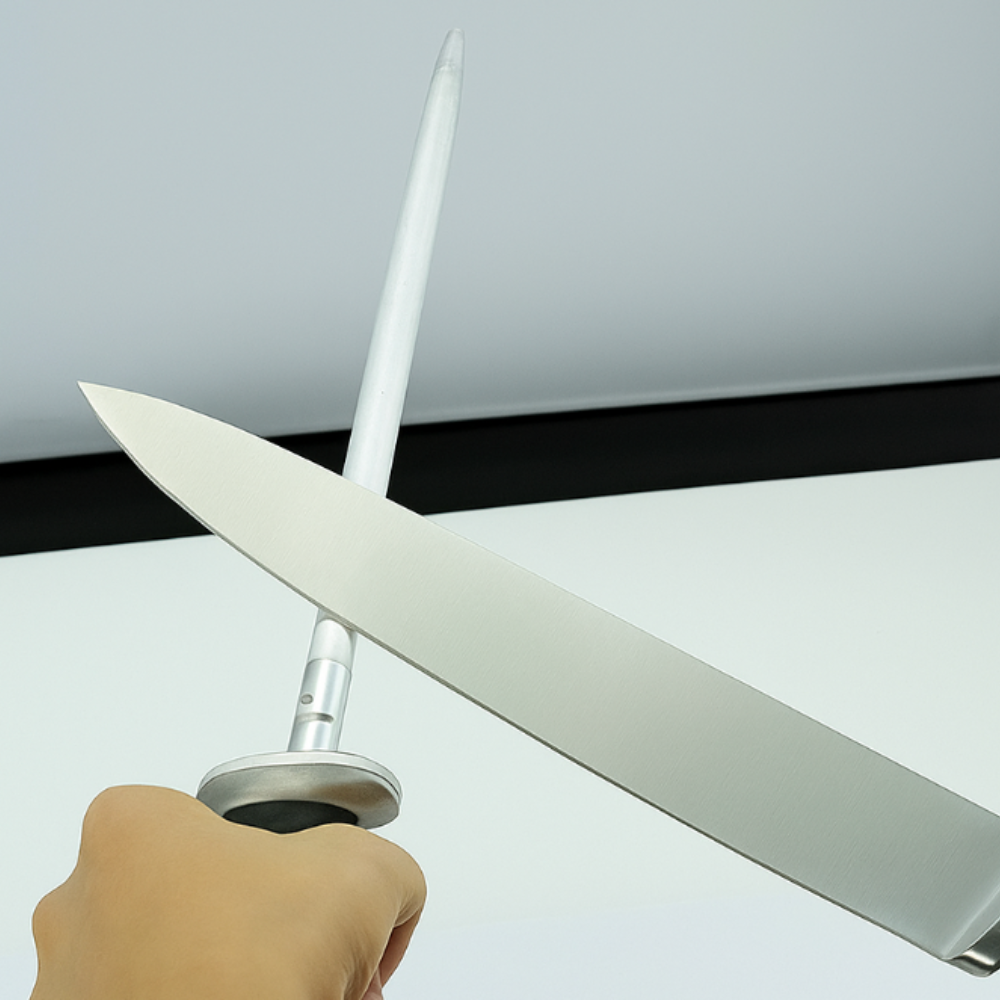 Ce fusil à aiguiser en acier inoxydable est l’accessoire essentiel pour entretenir vos couteaux de cuisine et conserver un tranchant net.