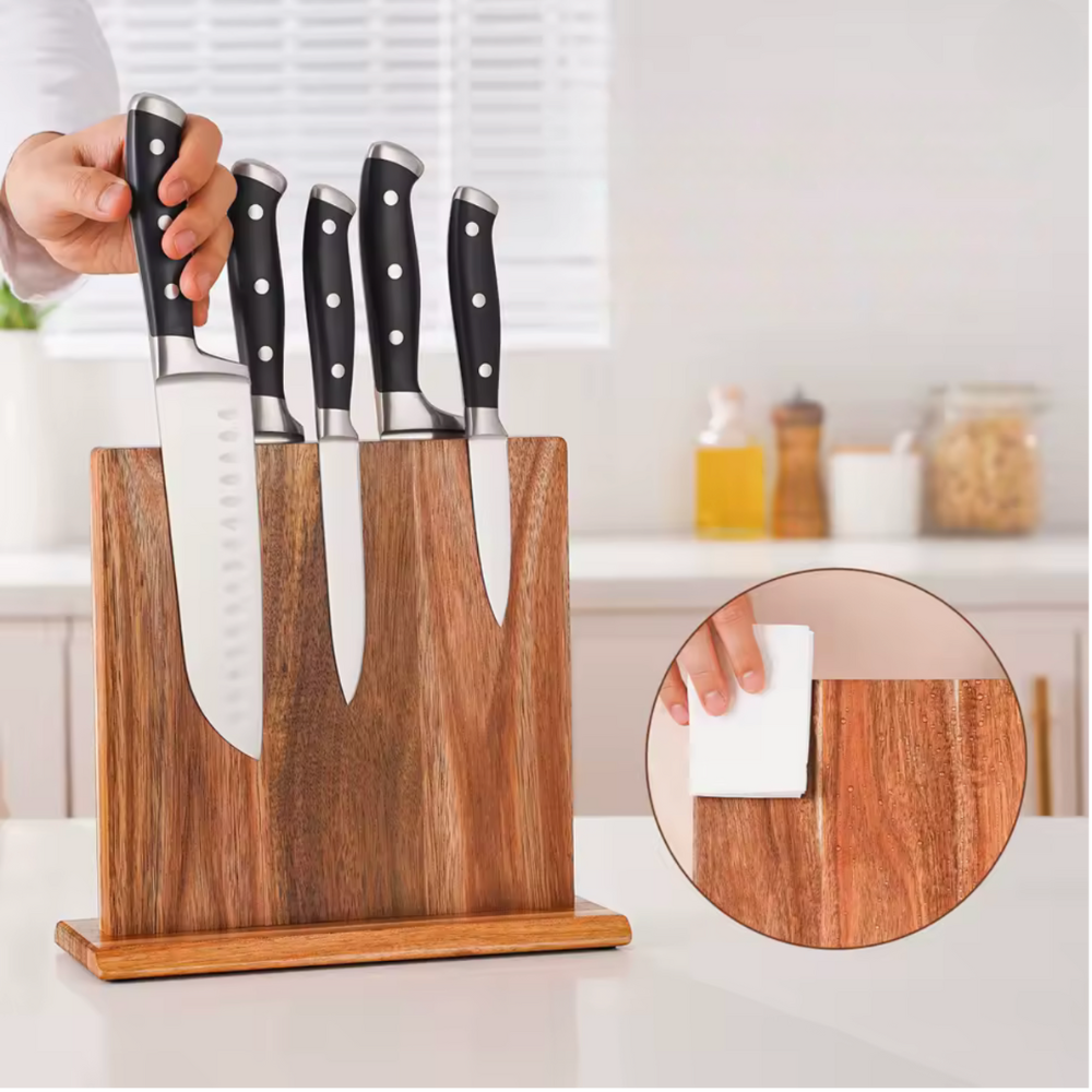 Porte-Couteaux magnétique double face – Bois d’acacia (25 × 23,5 × 10 cm)